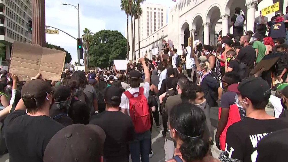 Thousands of protesters were marching again in Los Angeles on Tuesday as a city-wide curfew was extended to a fourth night. More than 2,700 people have been arrested in Los Angeles since protests and violence began. That's according to the Police Chief Michel Moore, who apologized again on Tuesday for stating previously that rioters "capitalizing" on the mass gatherings have the death of George Floyd on their hands.