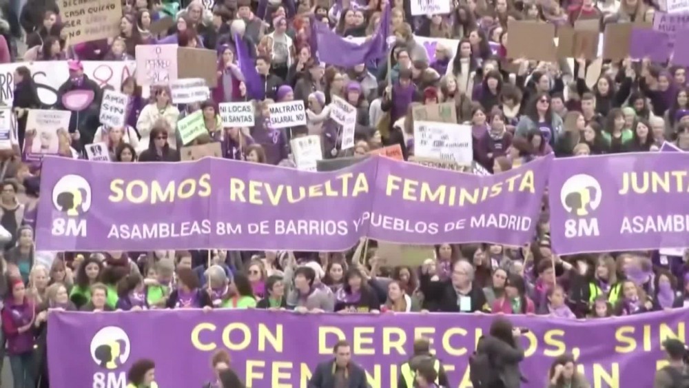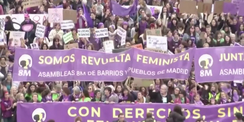 Bearing purple balloons and banners denouncing gender violence, a dense crowd paraded down one of Madrid's main avenues towards the city centre, chanting over the beat of tribal drums. Spain's women's rights movement has become a powerful political force since the landmark "Wolf Pack" trial in 2016, when a group of five men were jailed for sexual abuse after gang-raping a young woman at the Pamplona bull-running festival.