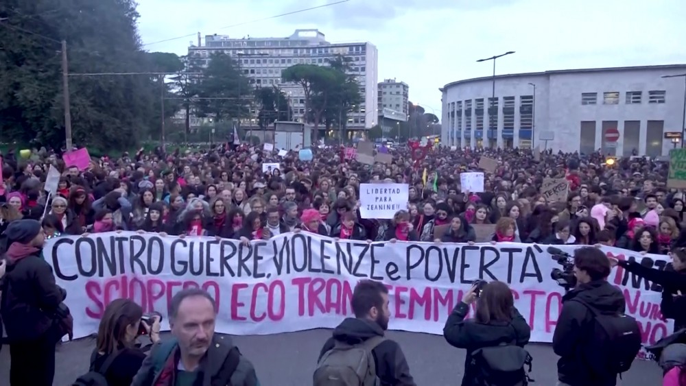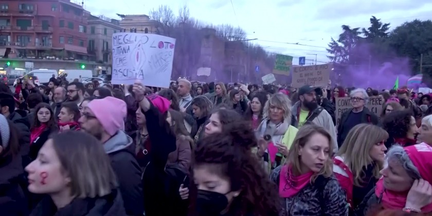 Thousands of protesters marched in Rome to mark International Women’s Day on Wednesday. The demonstrators shouted slogans and held banners promoting women’s rights during the rally in the Italian capital. International Women's Day is celebrated every March 8th around the world to highlight women's rights and protest against the violence and abuse of women.
