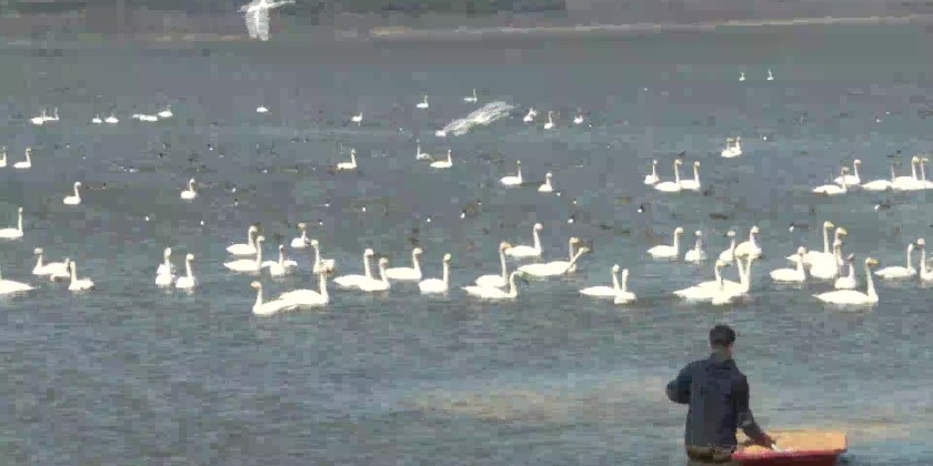 The Hamatombetsu Lake Kutcharo Waterfowl Observatory said the number of swans has been increasing since the start of April. It says about 2,000 tundra swans and whooper swans were confirmed to have arrived as of Tuesday. The birds are expected to begin leaving for their breeding grounds in Russia in early May.