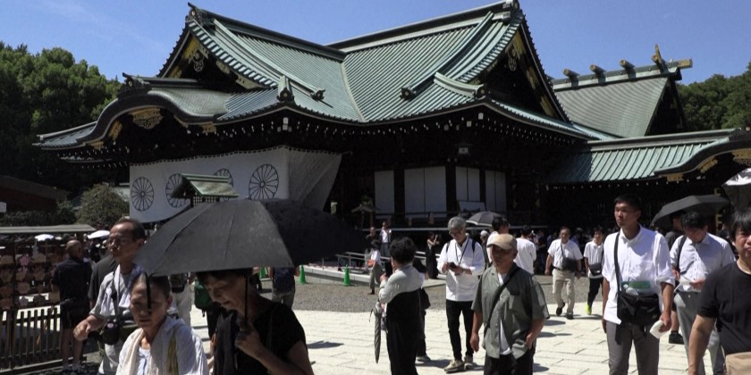 Tens of thousands brave the blazing heat to pay their respects at Yasukuni war shrine in Tokyo, marking 80 years since Japan’s surrender in World War II. Yasukuni Shrine honors 2.5 million, mostly Japanese soldiers who died in late 19th century, and also enshrines convicted war criminals.