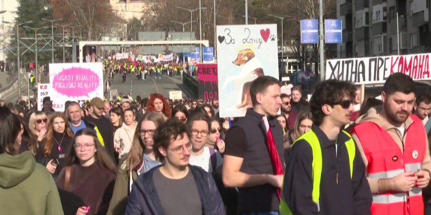 Thousands of student protesters gathered in Belgrade on Sunday to block a major road, intensifying pressure on the Serbian government following the fatal collapse of a train station roof in November 2024.