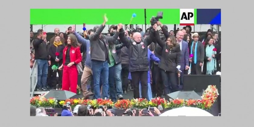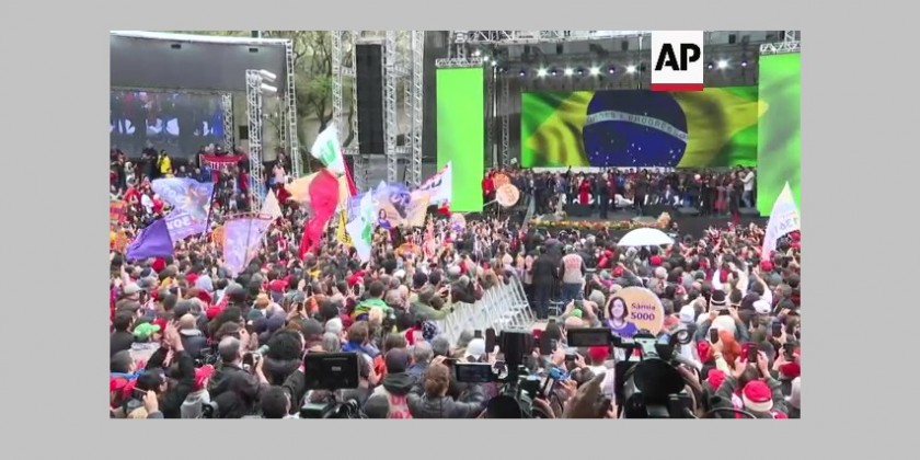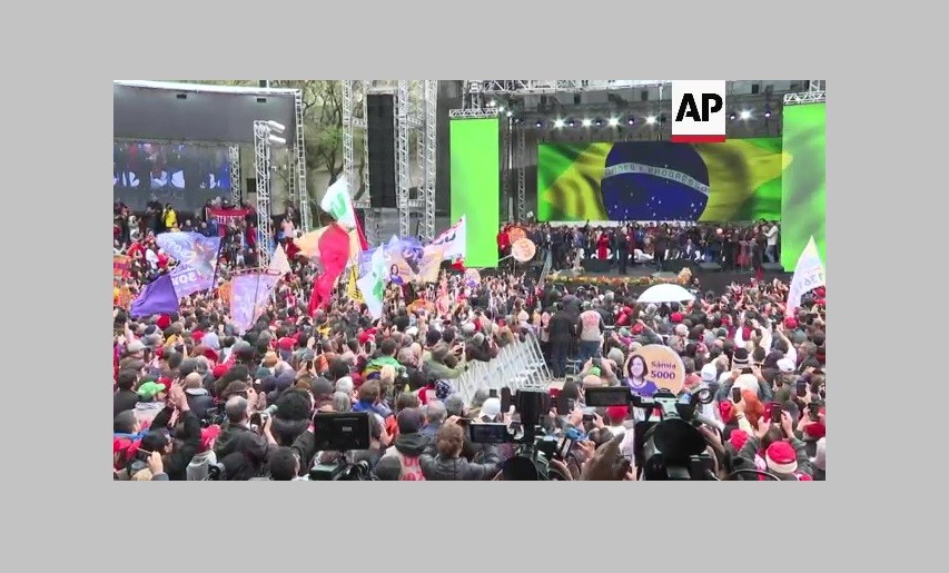 Supporters chanted when he took the stage in the first public event of his campaign to try and unseat incumbent Brazilian President Jair Bolsonaro.