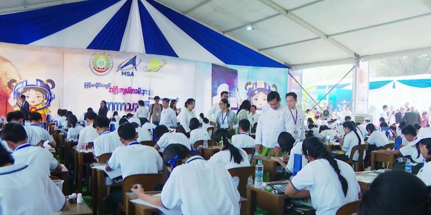 Myanmar’s largest basic education-level Space Painting, Cartoon and Poster Competition opened at People's Square in Yangon on Friday. The event was formally opened by Yangon Region Chief Minister U Soe Thein, and concerned officials as well as General Director Mr. Dmitry V. Bakanov from Russia's Roscosmos.