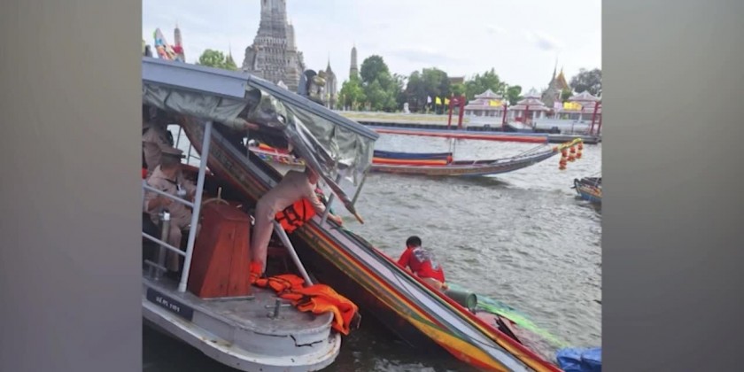 A long-tailed boat, carrying Chinese tourists, collided with a ferry in the middle of the Chao Phraya River in Bangkok on Friday, injuring three. The accident occurred near the Wat Pho Temple.The injured tourists, including two women, were rushed to Hua Chiew Hospital.
