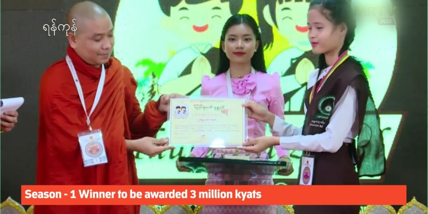 Hay Man Oo, Quiz Exemplary Award Winner, Thuta Quiz Idol – Season 1 said “I have studied primary text books, intermediate text books and advanced text books, and 8 books, 6 series per book, of Mahar Buddha Life Stories to participate in this contest. I have tried my best and calmed myself during the contest.”