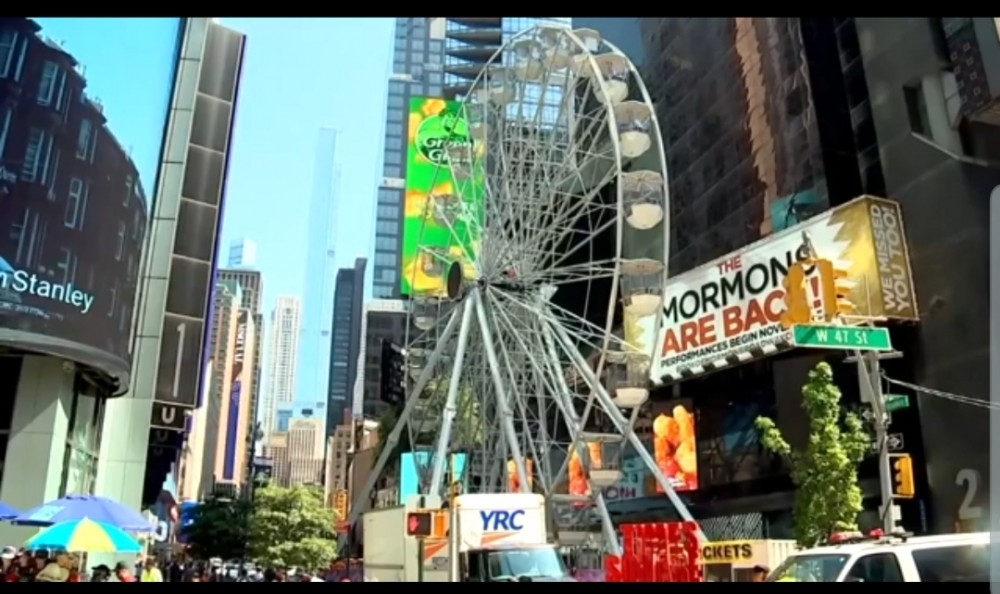 Times Square's newest attraction opens today, and it is taking visitors for a ride. The Times Square Wheel is a ferris wheel that will spin riders 110 feet into the air, offering a unique view of 'the crossroads of the world.' It is located on Broadway at 48th Street, which has been closed to vehicular traffic. Tickets prices range from $15 for kids to $20 for adults.
