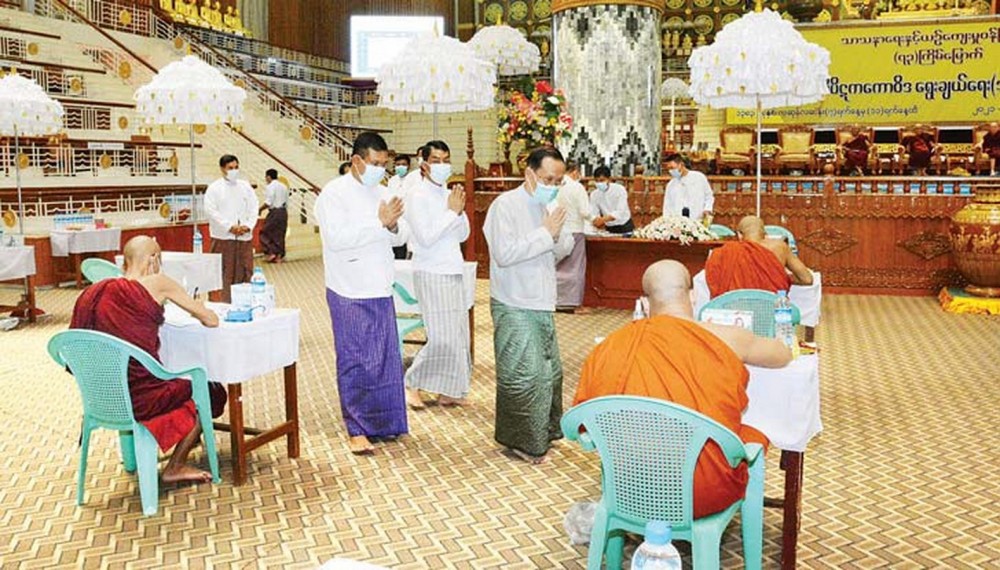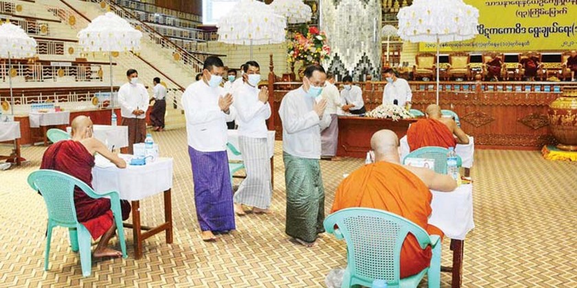 Afterwards, Chairman Sayadaw of State Sangha Maha Nayaka Committee delivered an Ovadakatha, followed by the Union Minister supplicating religious matters.
