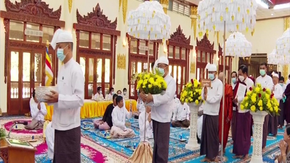 Afterwards, Chairman Sayadaw of State Sangha Maha Nayaka Committee delivered an Ovadakatha, followed by the Union Minister supplicating religious matters.