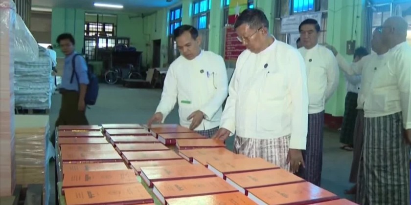 In the afternoon, Union Minister U Tin Oo Lwin, accompanied by officials visited the Kaba Aye Printing House in Mayangone Township to inspect the printing process of treatises.