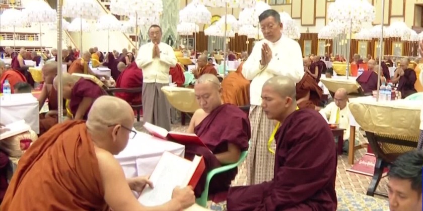The opening ceremony of the 77th Tipitakadhara Tipitakakovida Selection Examination was held at the Wizaya Mingala Dhamma Thabin Hall on Kaba Aye Hill in Yangon on Tuesday.