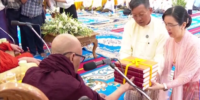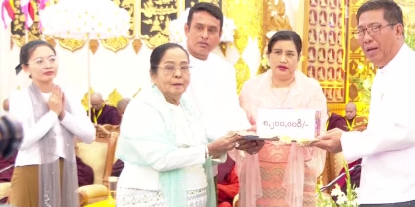 The Yangon Region Government then donated over 90 million kyats in cash to the Sayadaws of the State Sangha Maha Nayaka Committee, Sayadaws of the Tipitakadhara Tipitakakovida Selection Board, Tipitaka Pucchaka Sayadaws, supervisory Sayadaws and examinees and the Union Minister, Region Government Ministers and officials accepted the donation and returned the certificate of honor.
