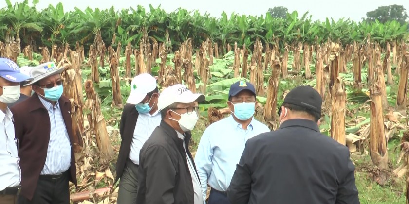 Union Minister Tin Htut Oo, Kachin State Chief Minister U Khet Htein Nan, State Cabinet Ministers and departmental officials inspected the tissue banana plantations and harvesting and packaging of the bananas cultivated by Longyang Company located in San Khar village of Waing Maw Township.