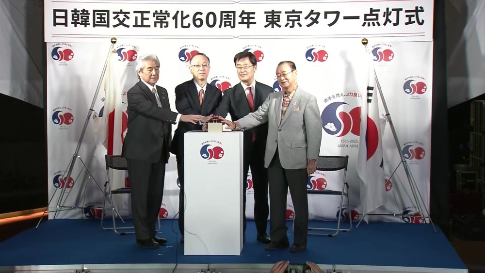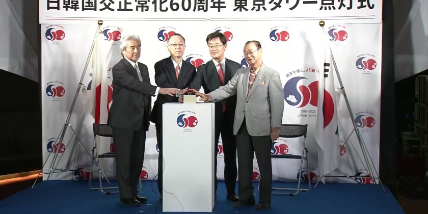 With the pressing of the switch, a logo mark commemorating the 60th anniversary was also projected upon the tower. Visitors between Japan and South Korea totaled more than 12 million in 2024, marking a record high.