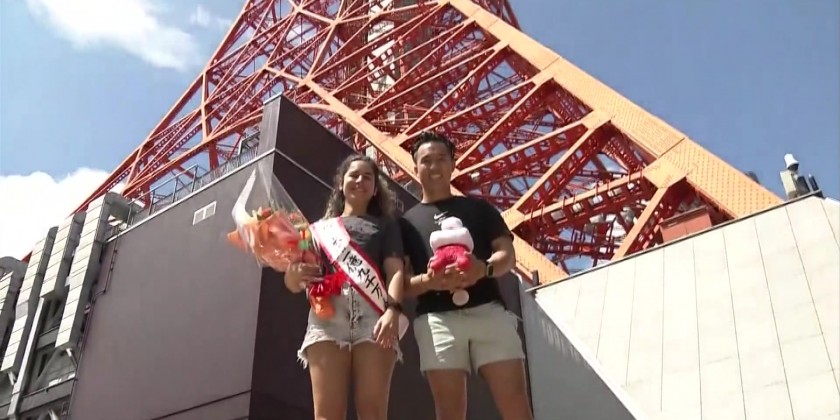 The tower is located in Minato Ward and stands 333 meters tall. It was opened in 1958 as a radio tower. The milestone visitors were Toby and Lauren Tong, a couple from the US city of Seattle. They were among the many tourists who were visiting the tower on Wednesday from around Japan and overseas.