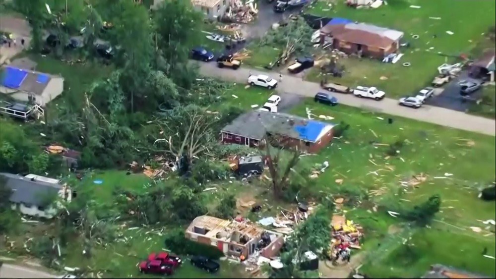 Authorities say tens of thousands of customers were without power and damage reports were coming in after severe weather including a tornado struck east of Cincinnati, a city in the U.S. state of Ohio on Wednesday.