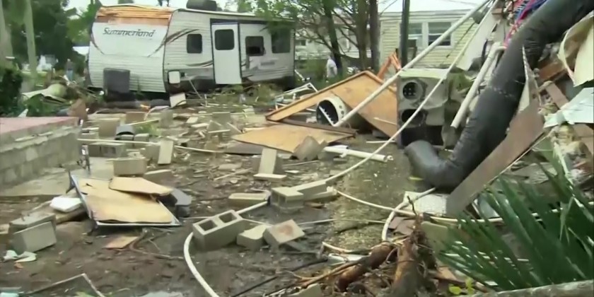 A tornado ripped through a trailer park in Florida on Sunday as a dangerous winter storm combining high winds and ice swept through parts of the U.S. Southeast. 27 mobile homes were destroyed and 24 were badly damaged. There were no reports of serious injuries.