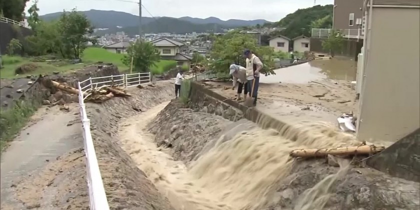 Torrential rain triggered a mudslide and more floods across Japan on Sunday.
