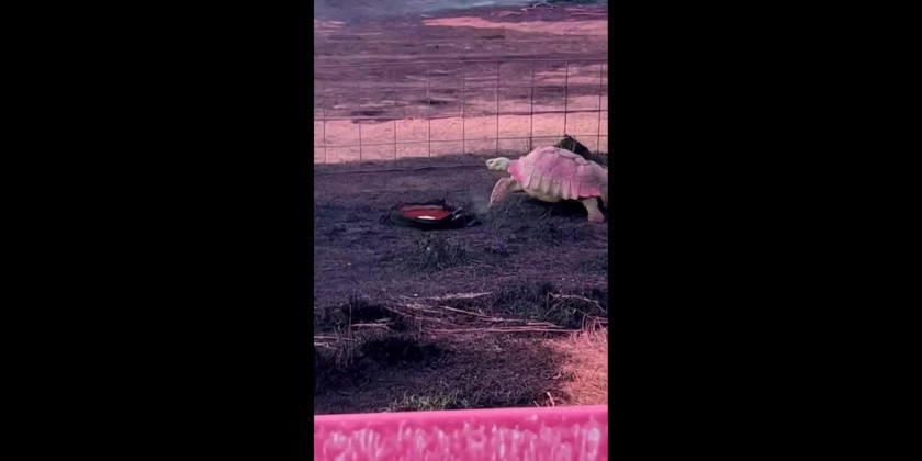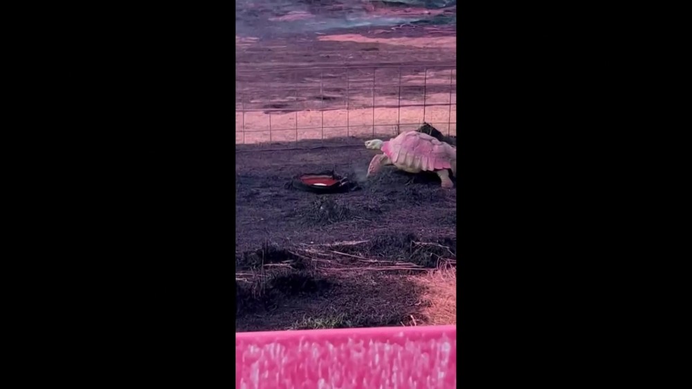 Tortioses were covered by pink fire retardant and a portion of their sanctuary was damaged in a Northern California wildfire. The Tortoise Acres Rescue and Sanctuary in Anderson, was in the path of a wildfire in Shasta County.