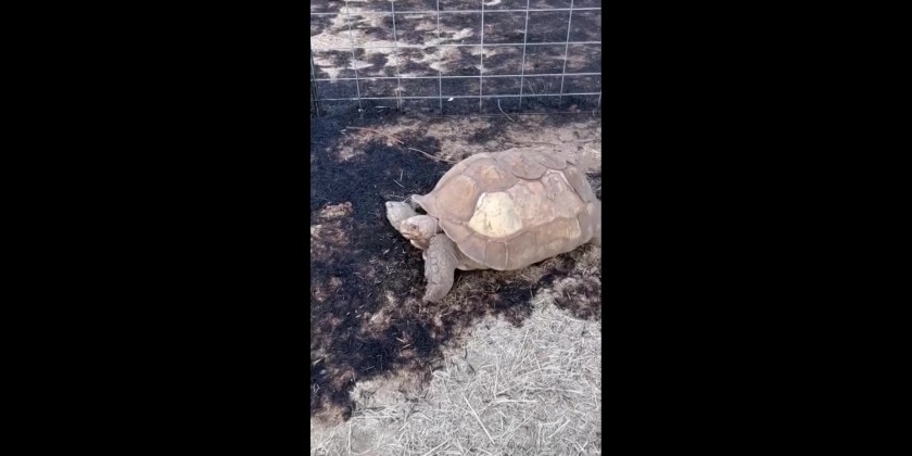 As the fire and air response personnel tried to control the fire around the sanctuary, the fire retardant they dropped covered several tortoises.