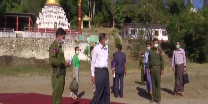 The Prime Minister and wife and party later visited the Upper Footprint, and donated flowers, water and gold foils to the Golden Ceti. They also made cash donation for all-round renovation of the pagoda. The Prime Minister later viewed round the Mann ShweSetttaw Pagoda and gave instructions on long term maintenance of the pagoda. The Prime Minister and party later visited SakkyarPantaung Ceti in ThetTharPantaung Village of PwintPhyu Township, and made cash donation. On arrival at LaeKai Village, the Prime Minister and party inspected renovation of ShwePyayAye Pagoda and the Prayer Hall.