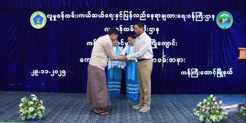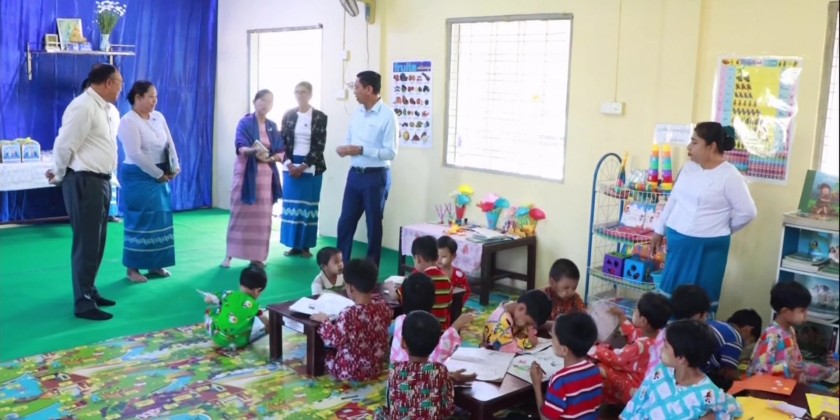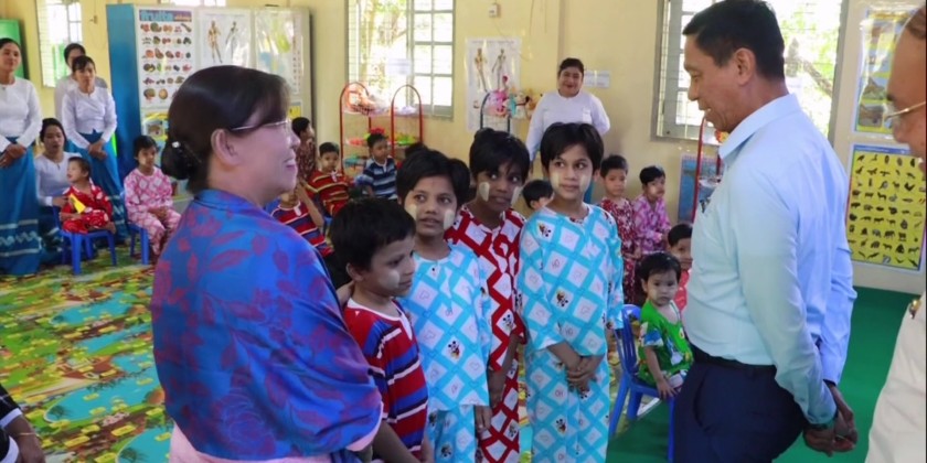Appreciation certificates were then presented to donors who provided the land for the school. The kindergarten currently provides early childhood education for 75 children. In the afternoon, Union Minister Dr. Soe Win visited the Pathein Child Care Center, and inspected the center’s facilities and provided necessary support.