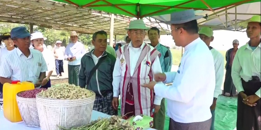 In Kyun Daunt Village, the council member and party inspected the harvesting of winter crops which yields 168 tons raw peanuts per acre while 150 tons of dried peanut. They then visited the oil mill and viewed the opertion process.