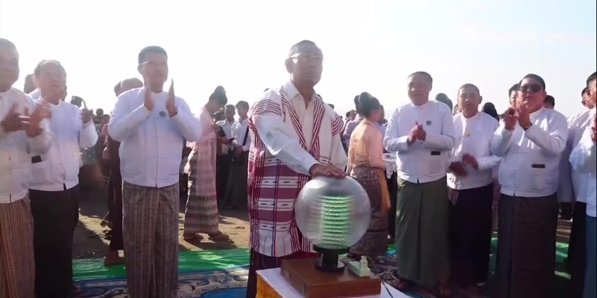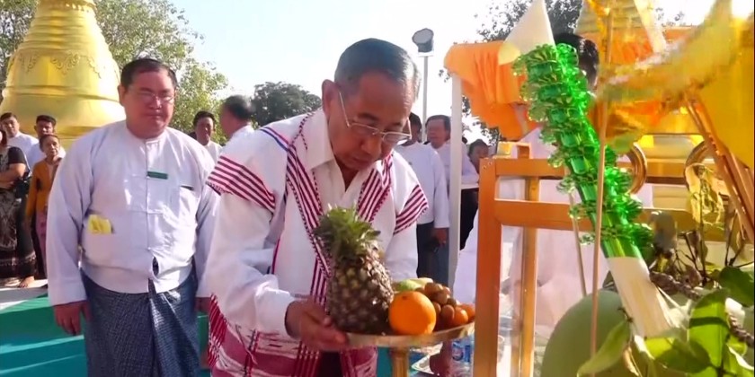 member of the State Administration Council Mhan Nyein Maung attended the opening ceremony of Buddha Pujanina Festival of Maha Makuta Ramthi San Taw Shin Myat Maw Tin pagoda at the Zee Chaing Village-Tract of Nga Pu Taw Township is being held from February 27 to March 15.