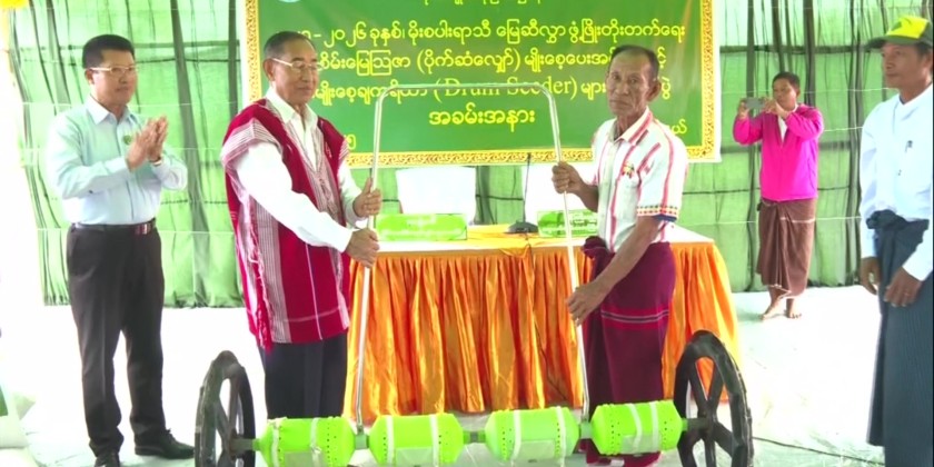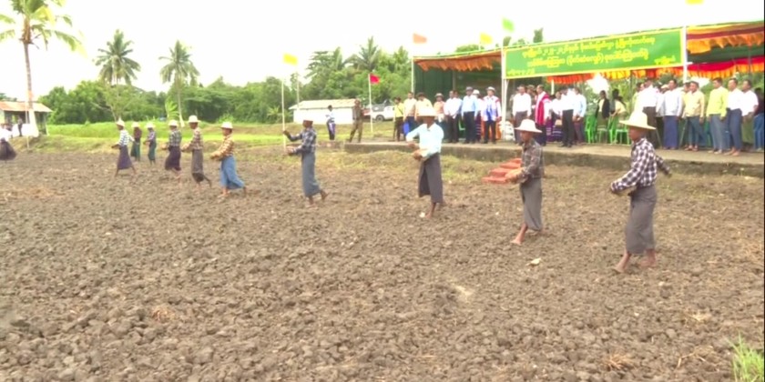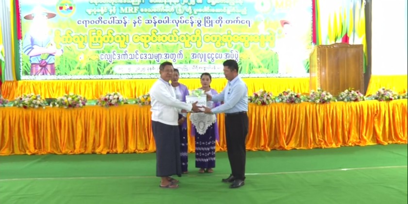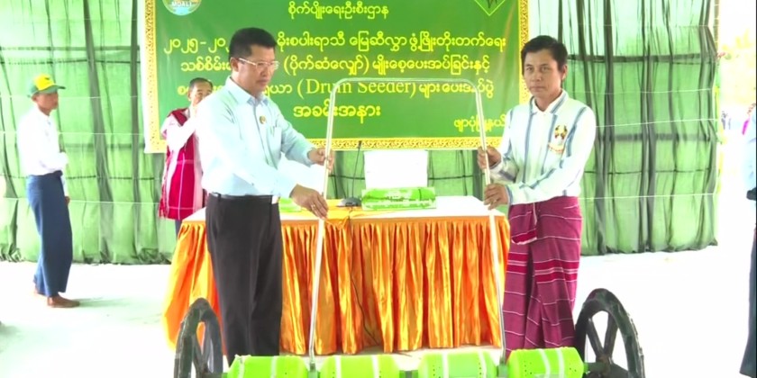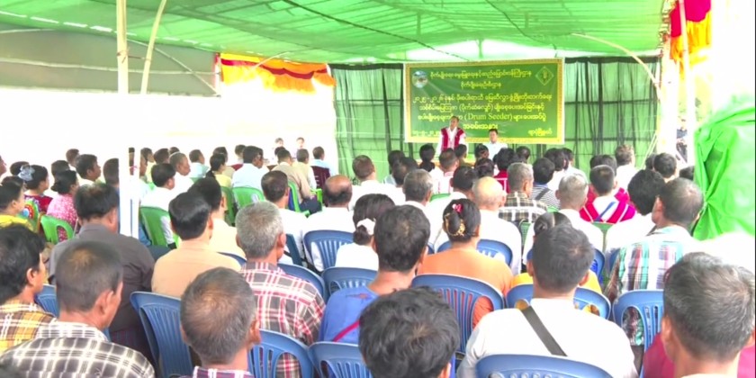 After the meeting, green manure seeds and drum seeders were provided to the farmers, following by spreading of green manure seeds in the farm. Afterwards, the Council member attended a seminar for development of rice industry, organized by four townships of Pyapon District.