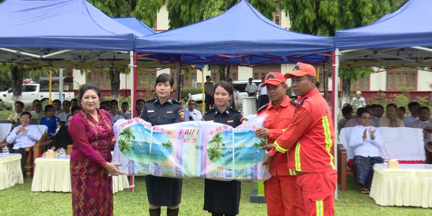 During the ceremony, 100 sets of temporary fabricated tent, over 300 tarpaulin sheets, instant noodle and rice soup cups donated from People’s Republic of China were handed over to the rescue teams and social organizations. Then, the SAC member, the Chief Minister and officials viewed around the donated items and cordially met with the rescue teams.