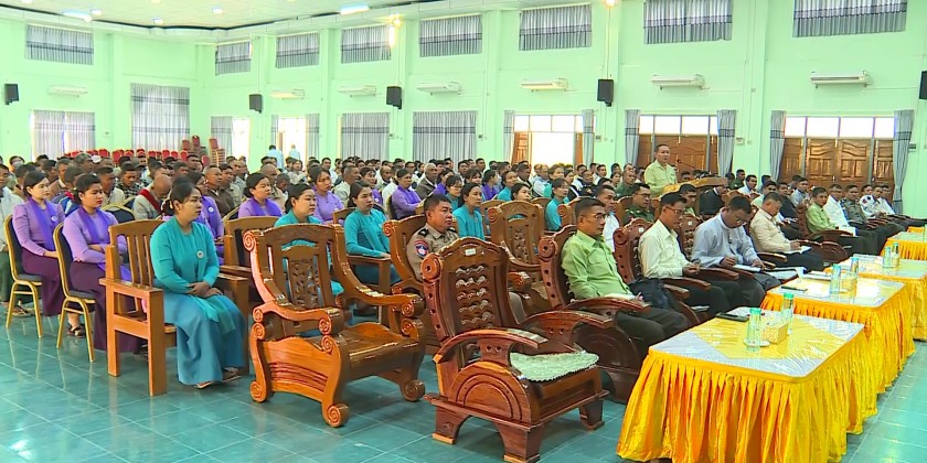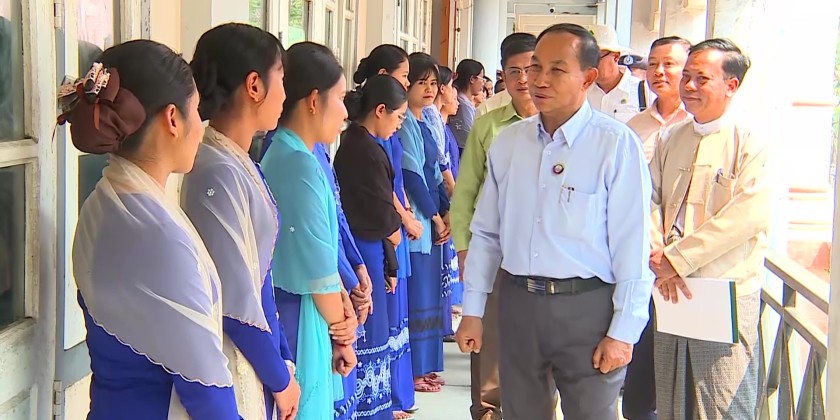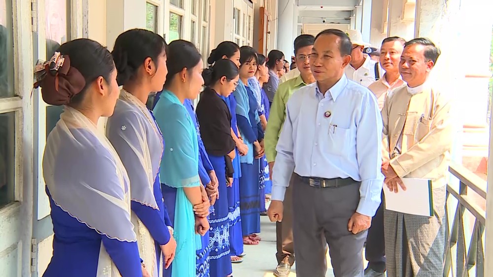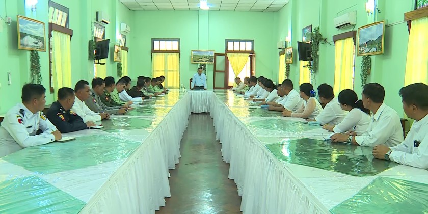 After hearing reports on academic matters, the Chief Minister provided the needs. They then proceeded to the local Commanding Headquarters and held a coordination meeting for smooth process of matriculation exams in Kalay District. The attendees discussed the preparation work plans including traffic safety, fire prevention measures, systematic management of exam papers and security measures.