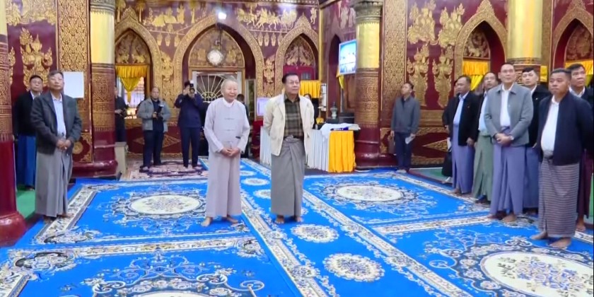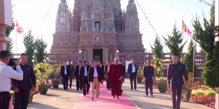 They then viewed the construction of religious buildings, paying homage to the four significant sites of Buddhology. The Acting President and party also paid homage to the Thata Thataha Maha Bodhi Pagoda and offered fruits, water, flower and light to the Buddha Image.