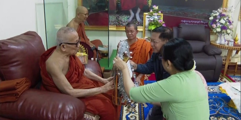 They paid homage to the Leading Patron Sayadaw of the monastery, submitting the religious matters and donating offertories. Then, the Prime Minister and party took a tour by motorcade to observe the conservation of Naung Ton Lake where locals enjoy recreation and relaxation activities.