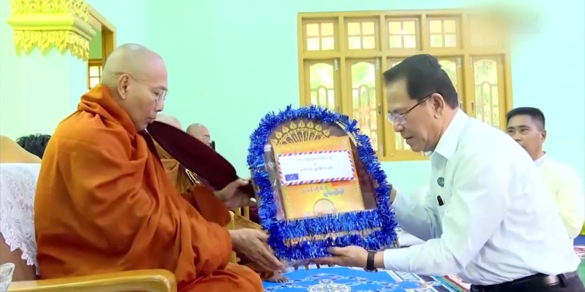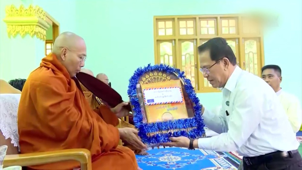 In the morning, the Union Minister, the State Chief Minister, responsible officials, and performing artists attended and made offerings of alms, oil, and requisites to the Sangha from the Buddhist monasteries of Loikaw at the Abbot Training Center in Loikaw.