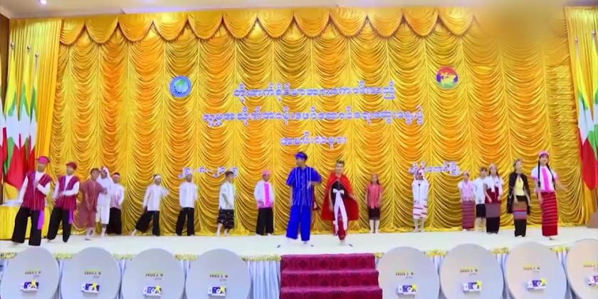 Later, four students from higher education institutions in Kayah State performed an English language proficiency demonstration, after which they were awarded recognition prizes. Students from the Education Degree College then presented a performance of the song “Everlasting Beauties of the Union.”
