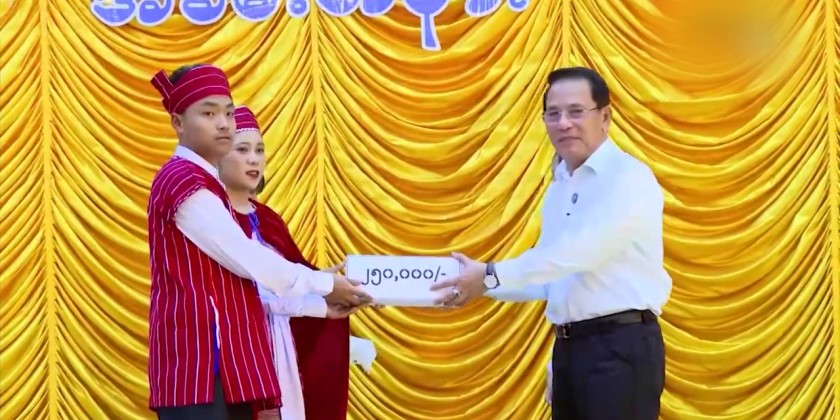 After the performances, the Union Minister delivered a speech. He then presented cash awards to the performing groups and donated educational books and journals for Higher Education schools in Kayah State, as well as a complete set of MRTV DTH satellite equipment and an MRTV T-2 set-top box to Computer University (Loikaw). Following that, the Union Minister, officials, and multi film academy awards winner actor Yan Aung drew lucky lots to award MRTV DTH satellite equipment sets and MRTV T-2 set-top boxes to participants of the discussion.