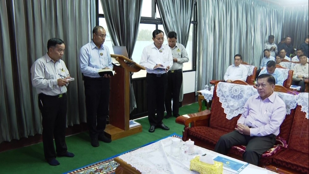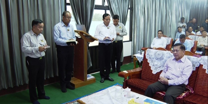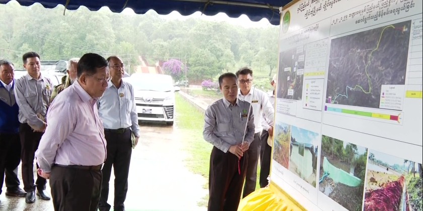 First, the Prime Minister and party arrived at the upgrading project of Keng Taung-Loimwe road, constructed by Road department under the Ministry of Construction. At the briefing hall, the Prime Minister heard reports on the project and completion tasks. Upon the reports, the Prime Minister instructed to ensure the long-term sustainability of the route.