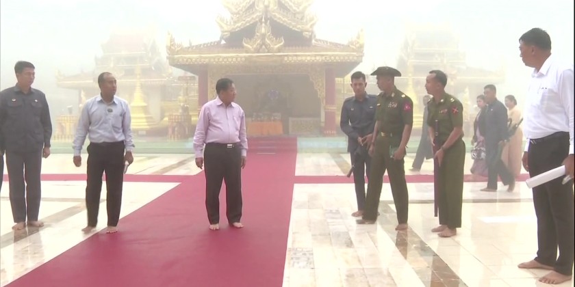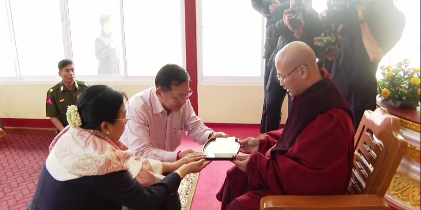 Then, the Prime Minister and wife paid homage to missionary Sayadaw Bhadanta Vipola and donated cash and offertories. After paying homage to the pagoda in clock-wise direction, the Prime Minister stressed the officials to maintain the pagoda for long-term durability.