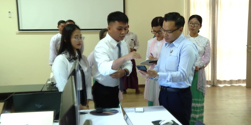 In the afternoon, the Deputy Minister arrived at University of Information Technology, and observed the conditions of developing and establishing models and web applications by the students to be used in the research projects for AI, EV, e-services and e-commerce.