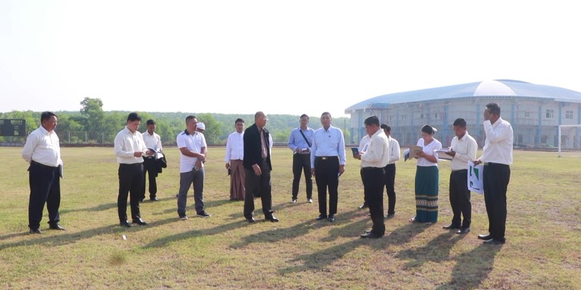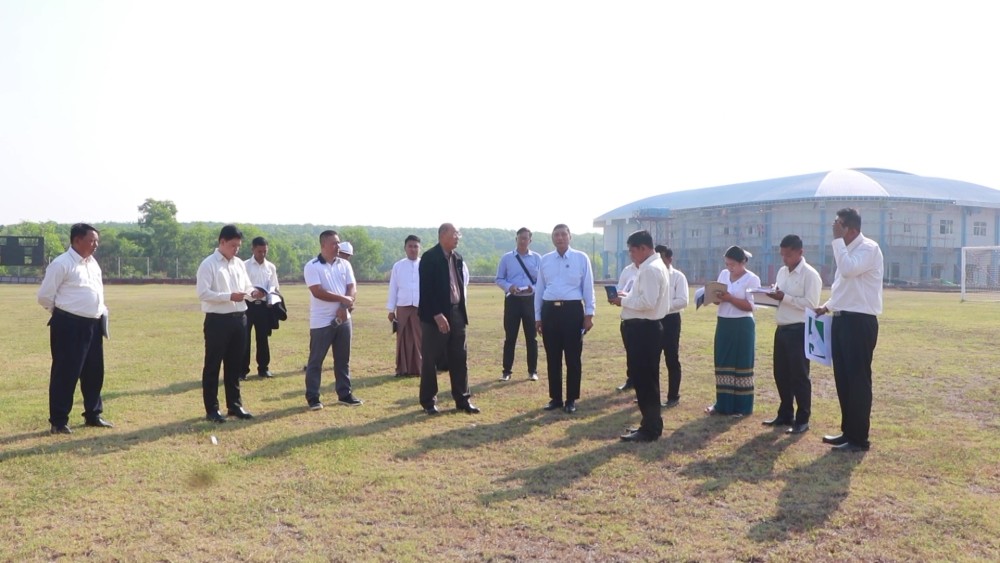 They visited Mon State Sport Complex to inspect sport facilities, dining hall, staff housing and construction site of sport stadium. The Union Minister instructed to construct ground tank for greening of the football field and water sprinkled system, polishing process of inner fencing of the field and cleaning of bushes.