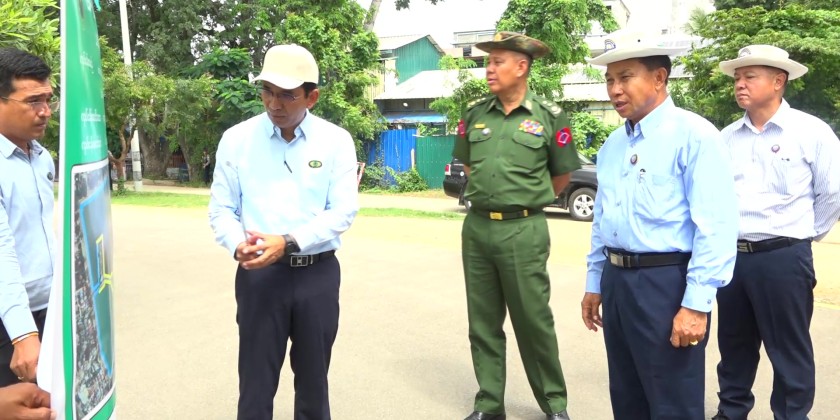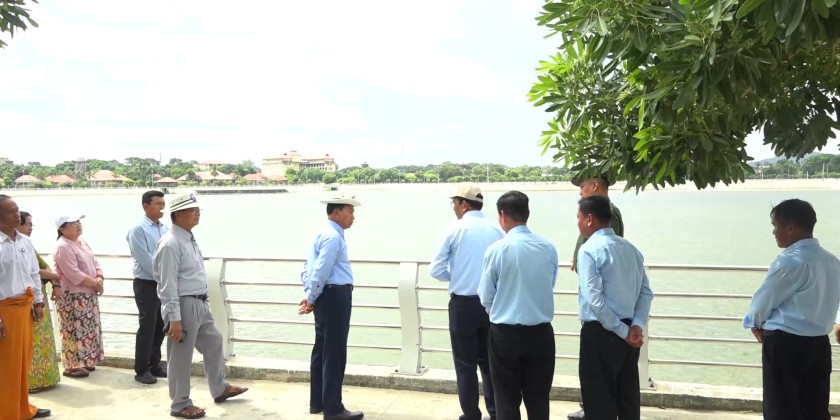 They then inspected the water storage lake on the west Kanthaya, which spans 10 acres and stores over 30 million gallons. The Chief Minister and party later inspected the installation of concrete embankments, and emphasized the needs to meet the standards while maintaining cleanliness and beauty of the lake with collective cooperation among the departments.