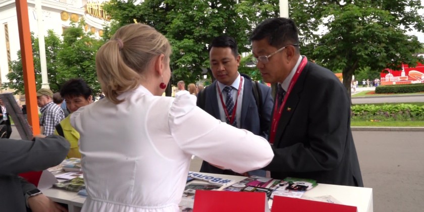 Union Minister for Hotels and Tourism U Kyaw Soe Win who are attending the forum with the invitation of Russian Minister for Economic Development Maxim Reshetnikov, visited the International Toursim Exhibitions displayed at VDNH Park on 11th June.