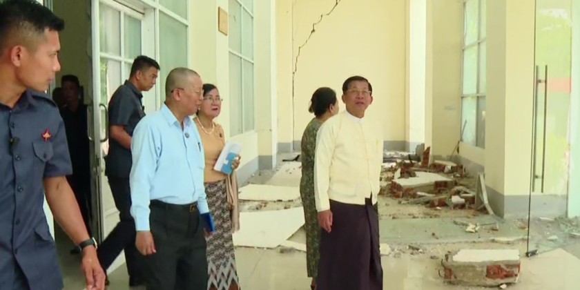 Chairman of the State Administration Council Prime Minister Senior General Min Aung Hlaing visited the National Library in Nay Pyi Taw on Thursday to oversee the damages caused by the severe earthquake.