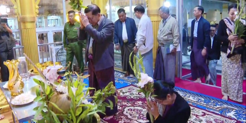 Acting President and Chairman of the State Security and Peace Commission Senior General Min Aung Hlaing visited the Shwe Sandaw Pagoda in Pyay of Bago Region on Saturday.