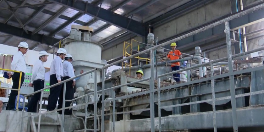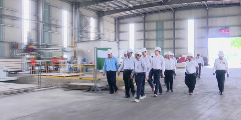 They inspected the production process of instant coffee, and instructed for quality control, adhering to the Good Manufacturing Practices. The Union Minister and party later visited the Fiber Cement Board Factory in Sintkai Township and heard reports on the production process.