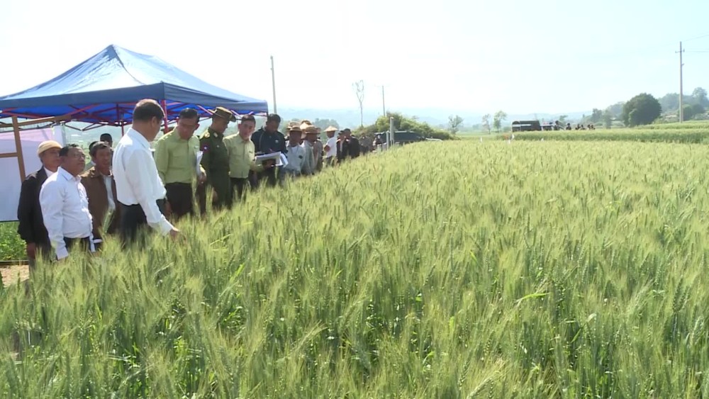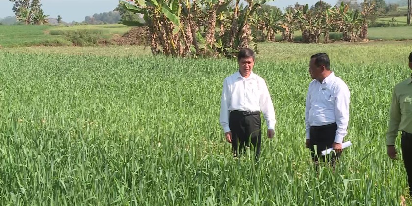 On 22nd January, Mandalay Region Chief Minister U Myo Aung accompanied by concerned officials inspected regional development activities within Pyin Oo Lwin Township. In Kyun Tapin Village, the Chief Minister inspected Yezin 9 species model wheat plot, heard reports on winter wheat plantations, annual cost and yield.