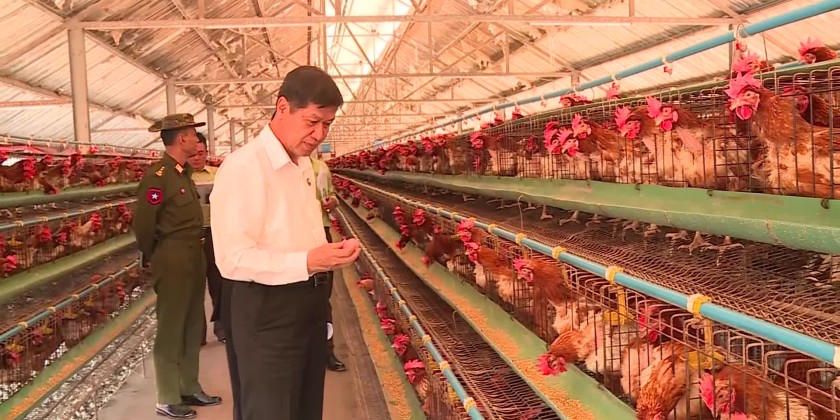 Upon reports, the Chief Minister stressed on provision of requisite assistance for the growers to ensure right varieties choices and high yield. On arrival at Myaing Gyi Village, the Chief Minister visited Shwe Kaung Kin poultry farm, heard reports on farming condition under open type system, poultry feed production by mixing raw materials from home and abroad, daily egg production and distribution at reasonable price as well as the difficulties encountered.