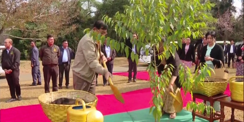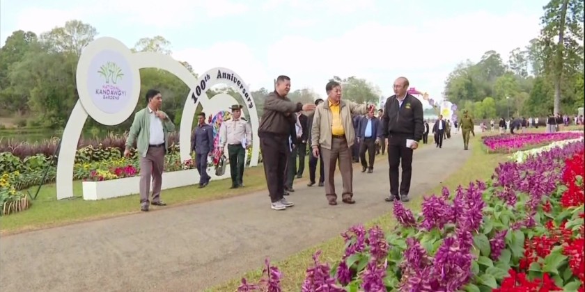 The Prime Minister and party later visited the National Kandawgyi Gardens where the Flower Festival is being held to mark the centennial of the garden. He viewed the Ginkgo Biloba tree, which has been in the gardens for nearly 100 years.