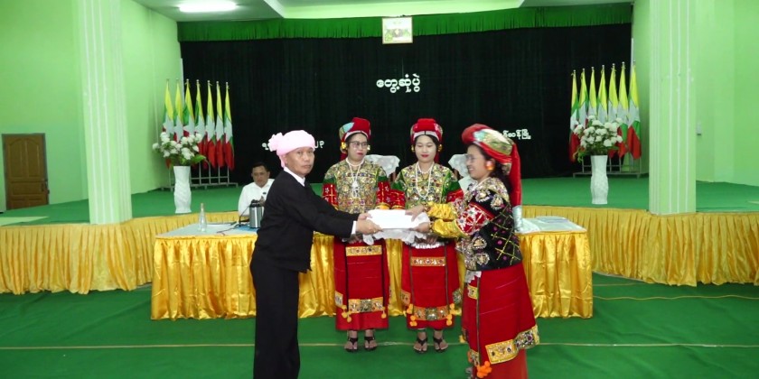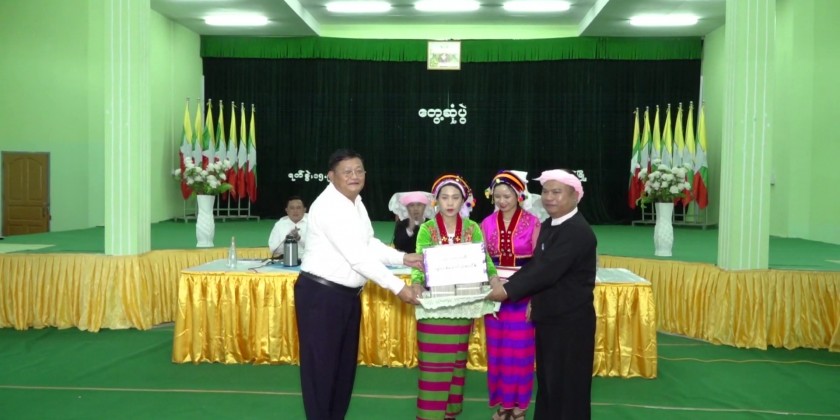 Shan State Chief Minister U Aung Zaw Aye fulfilled requirements upon the discussion. Next, the SAC members, Chief Minister and Deputy Commander provided 328.5 million Kyats of cash assistance for the construction of retaining walls for monastery, Region/Township Sub election Commission, Township development office and staff housing, gravel road and box culvert and the Chairman of Palanung Self-Administered Zone Administration Council Tar Thein Zaw accepted and then SAC member U Shwe Kyein provided cash assistance for the Palaung ethnic literature and culture committee and the committee accepted.