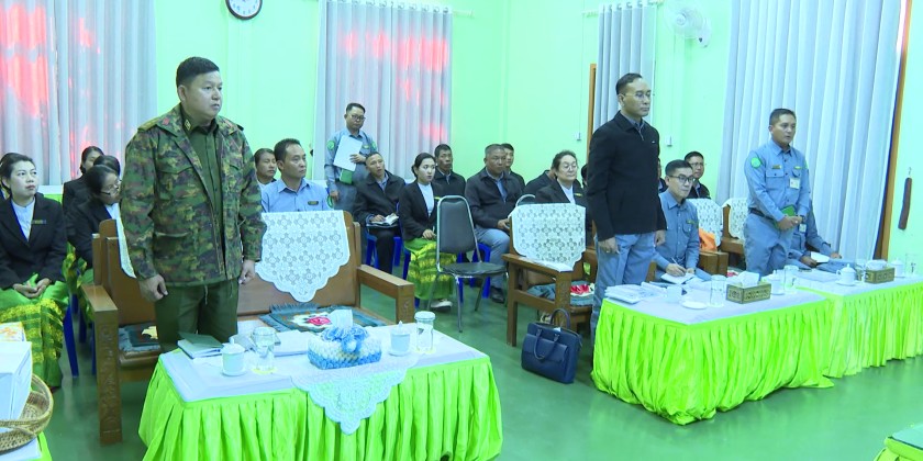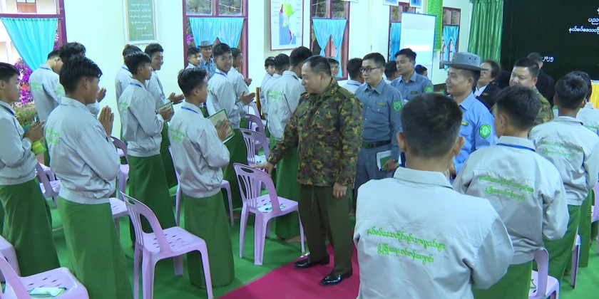 Member of the State Securtiy and Peace Commission, Union Minister for Border Affairs and Ethnic Affairs Lt-Gen Yar Pyae and officials on 6th of December arrived atĀ Shan StateĀ Development Supervisory Office (Keng Tung Branch) in Shan State (East) where officials reported on the update information regarding the regional development, and salient points of the Training School for Development of Nationalities Youth from Border Areas and Vocational Training Schools.